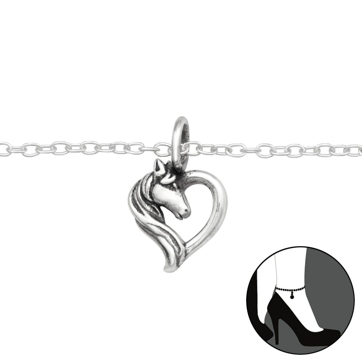 Szív és Lófej Ezüst Bokalánc - 27+5 cm a Lovas Ékszer Shoptól