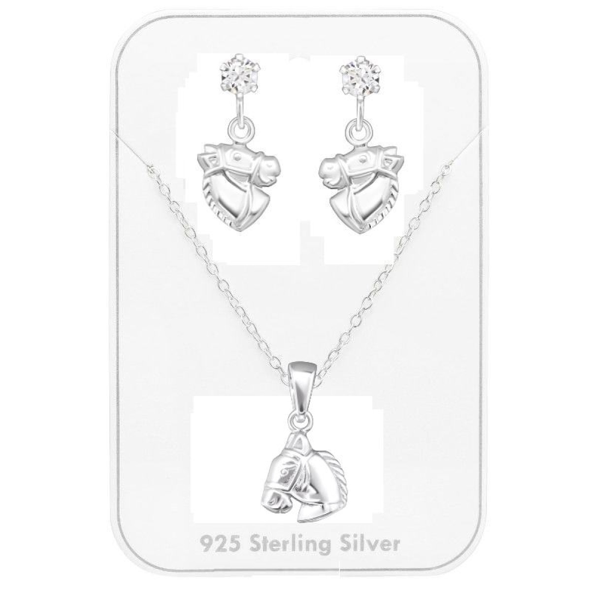 Lovas Kristály Ezüst Fülbevaló Szett - Nyaklánc + Medál + Stift Fülbevaló
