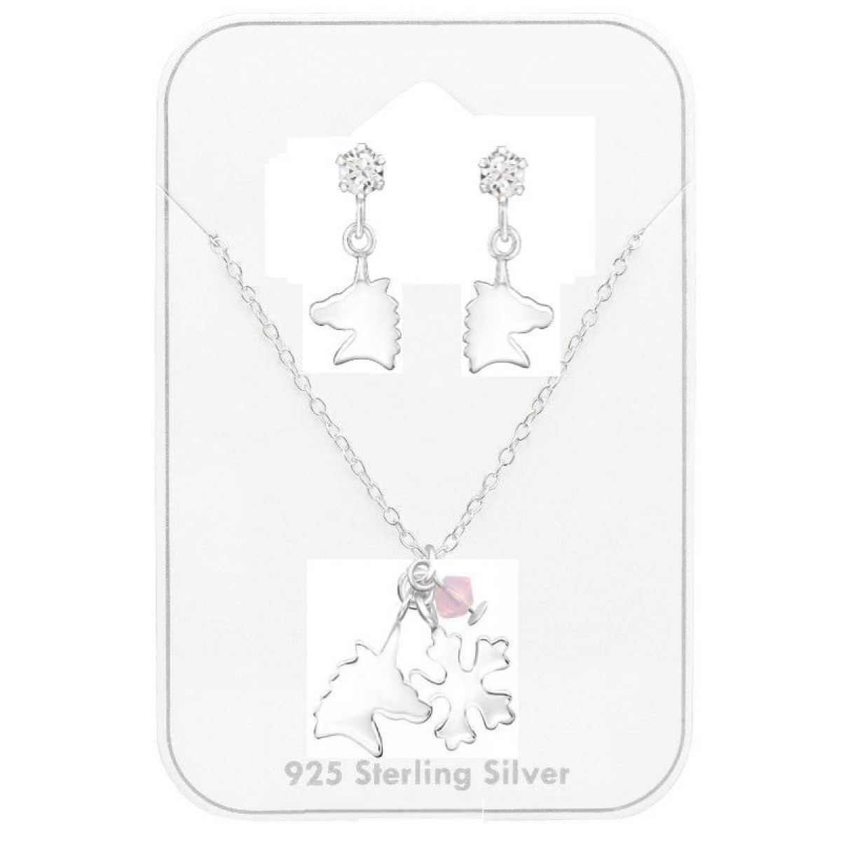 Lovas Ezüst Fülbevaló Szett - Nyaklánc Kristállyal + Stift Fülbevaló