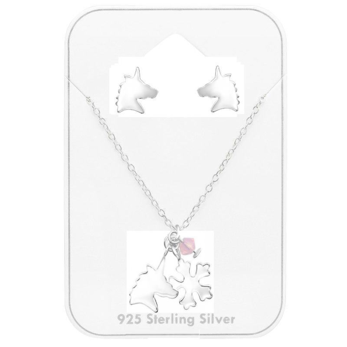 Egyszínű Lovas Ezüst Fülbevaló Szett - Nyaklánc + Stift Fülbevaló