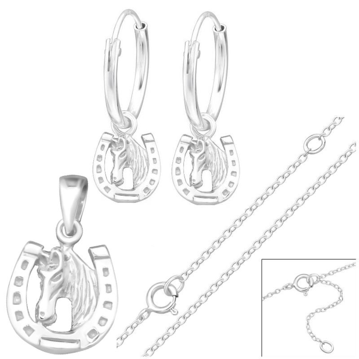 Lovas Patkós Ékszerszett - Nyaklánc + Medál + Karika Fülbevaló