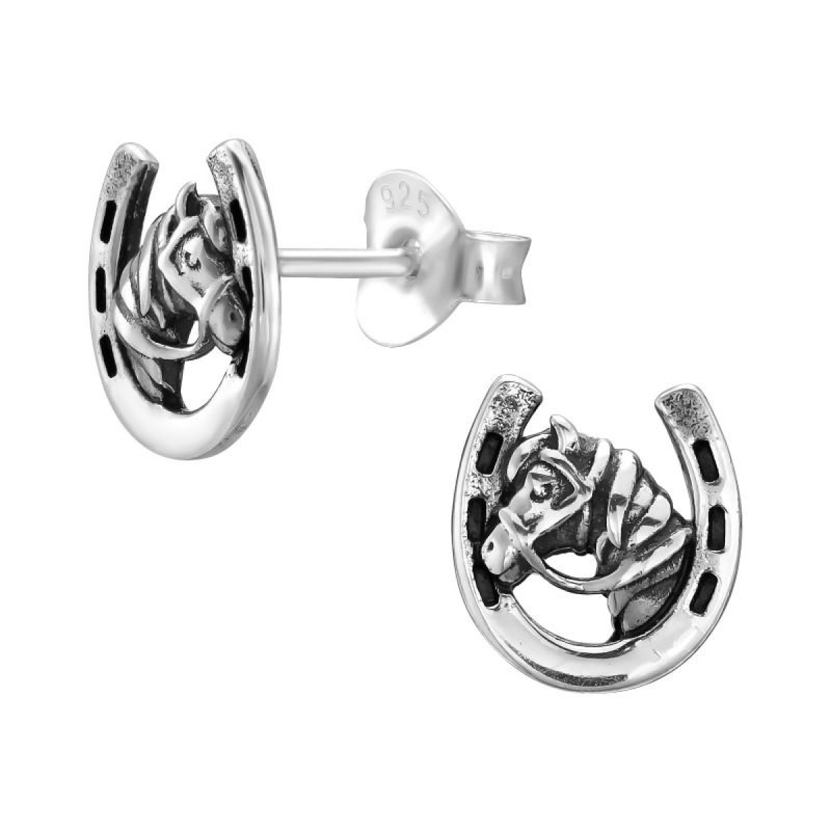 Lófej És Patkó Ezüst Stift Fülbevaló, Oxidált