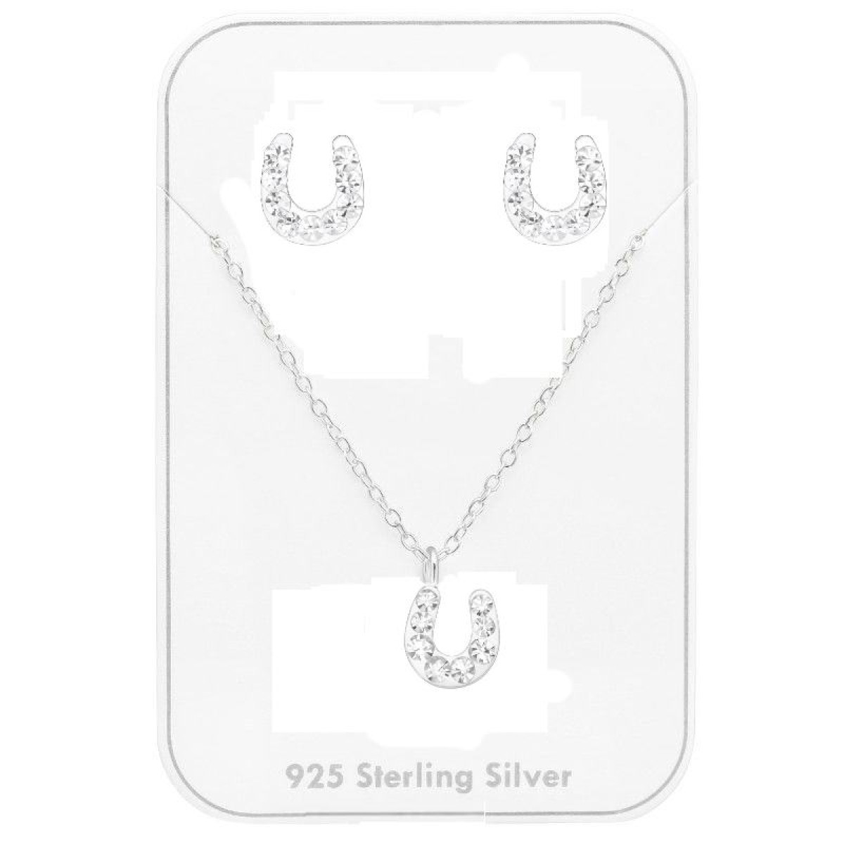 Patkós Kristály Ezüst Fülbevaló Szett - Nyaklánc + Stift Fülbevaló a Lovas Ékszer Shoptól