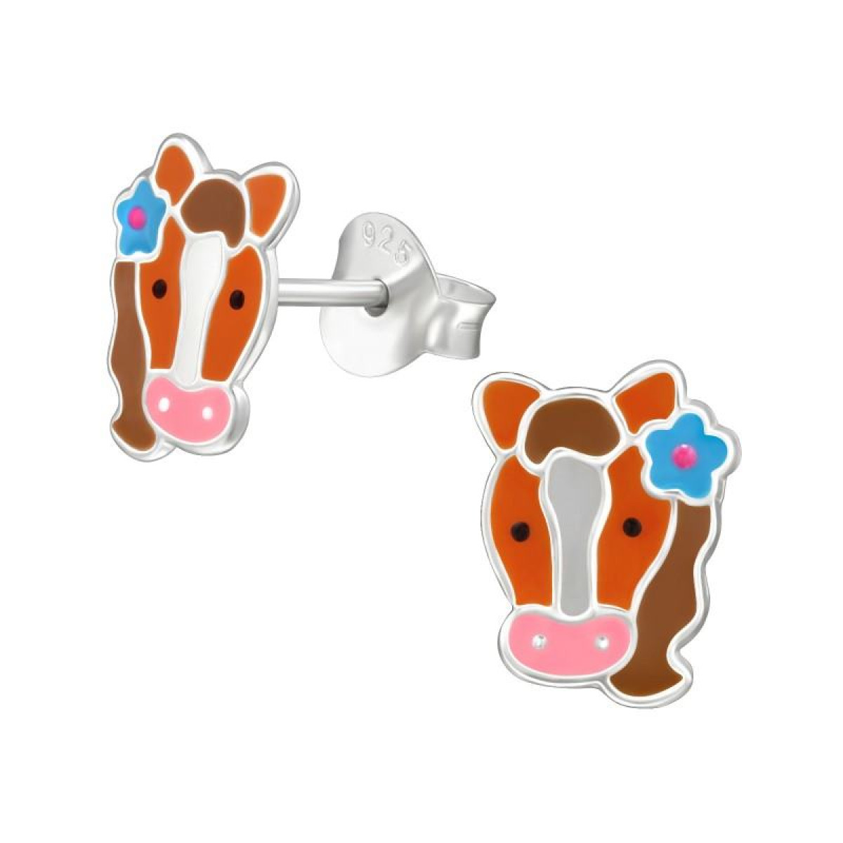 Színes Barna Lovas Ezüst Stift Fülbevaló