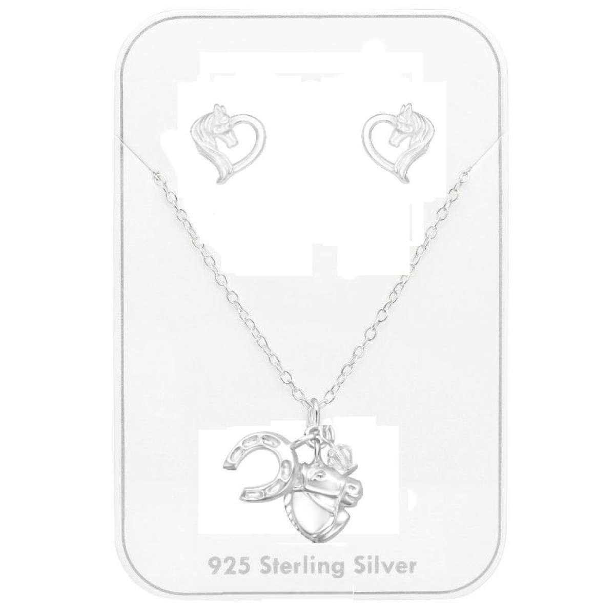 Lovas Szíves Patkós Ezüst Fülbevaló Szett - Nyaklánc + Stift Fülbevaló
